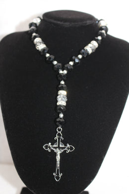 20" Rosary with a large Chevrolet bow tie centerpiece wtih 8x10mm beads. Various bead color options. Centerpiece comes in silver or silver and an antique background.